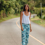 The Palolo Pant is a crowd fave! Cropped with a soft waistband, pockets, and adjustable tie hems for a playful twist. Comfy, breathable, and perfect for beach days, travel, or everyday wear.