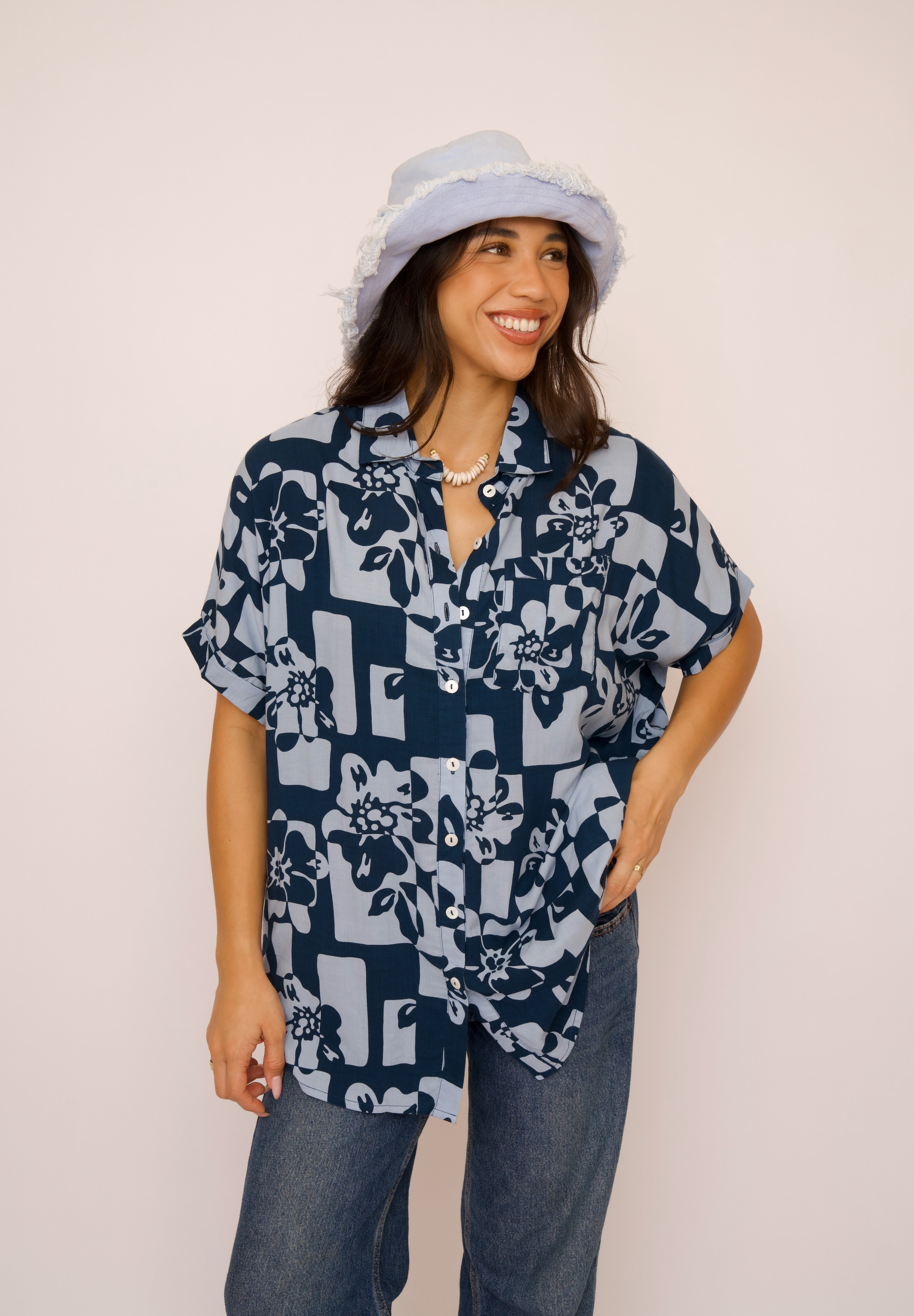 Oversized and super soft, the Wailuku Shirt is perfect for every occasion. Complete with mother of pearl buttons, this top can be worn loose, tied, tucked in and even backwards! It's the perfect companion to every wardrobe and vacation.