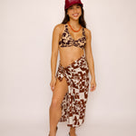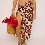 Model is wearing the pareo tied around her waist