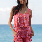 The Zinnia Top is a cute, cropped fave with gathered straps that cover most bras and a flattering v-neck. Fully lined for comfort, it pairs perfectly with high-waisted styles. True to size and ready for your next island adventure!