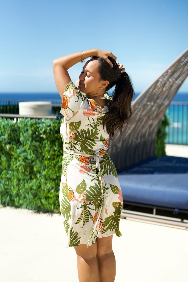 The Akela Dress is a simple and sweet wrap dress with a completely adjustable tie at the waist. This fit is great for all figures, and has a cute v-neckline that you can adjust higher or lower too!